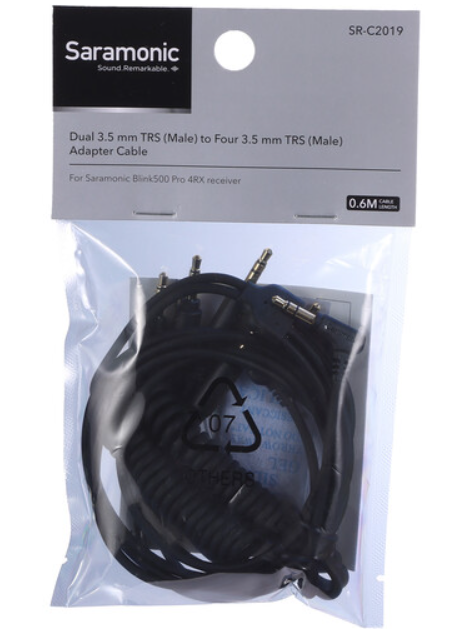 The Saramonic SR-C2019 is a versatile 23.6-inch (60 cm) coiled audio breakout cable that splits two right-angled 3.5mm TRS male inputs—ideal for dual wireless receivers—into four straight 3.5mm TRS male outputs for multi-camera or multi-track recording. Featuring gold-plated connectors for reliable, corrosion-resistant signal transfer, it’s optimized for systems like the Blink 500 Pro B8 quad receiver, enabling clean, isolated channel feeds to cameras, recorders, or mixers in dynamic setups such as multi-angle shoots in Ostrava.