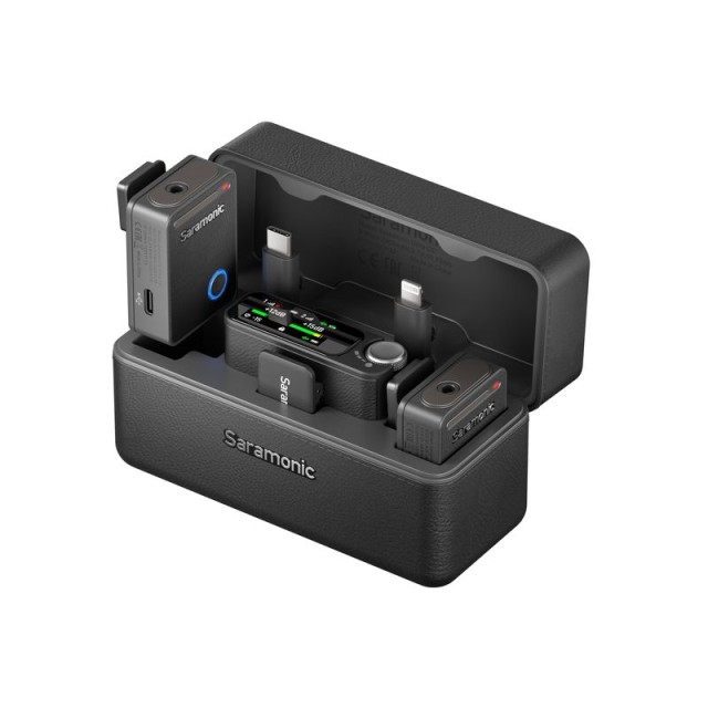 The Saramonic Ultra 03 is a professional-grade 2-channel wireless microphone system that features seamless timecode sync for effortless audio-video alignment. It is equipped with 32-bit float onboard recording and can handle audio levels up to 130 dB SPL without clipping. With its external antenna, it ensures stable transmission up to 300 meters, making it an ideal solution for film production, live events, and demanding audio environments.