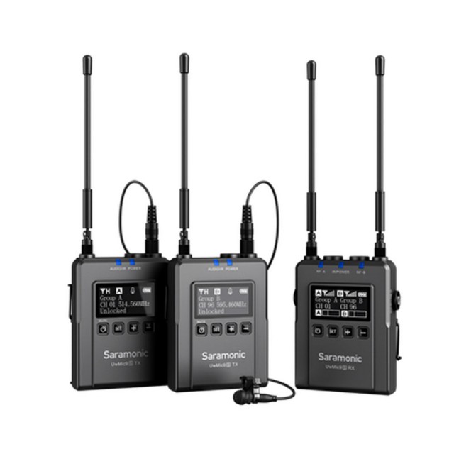 The Saramonic UwMic9s wireless microphone system provides a premium 2-person wireless audio solution for Broadcast &TV,ENG,filmmakers,vloggers,mobile journalists and content creators for a remarkable price,It is an easy-to use,high-quality and flexible UHF system,The external input allows the receiver to be connected to a mic or line level device,such as a shotgun microphone,mixer,recorder or music player to capture additional sound or music.The system can be powered through its USB-C ports,allowing it to run for numerous hours on a USB-C 5V power bank.