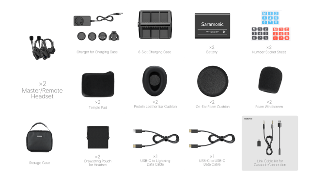 The WiTalk9 SE 2S is a cutting-edge wireless intercom system tailored for professional teams that require seamless, hands-free communication in dynamic environments such as filmmaking, live events, broadcast, and stage production. This 5-person system utilizes Saramonic's ClearTalk™ technology, which combines a three-microphone array and sophisticated noise cancellation algorithms to ensure crystal-clear 360° sound capture and rejection of ambient noise.