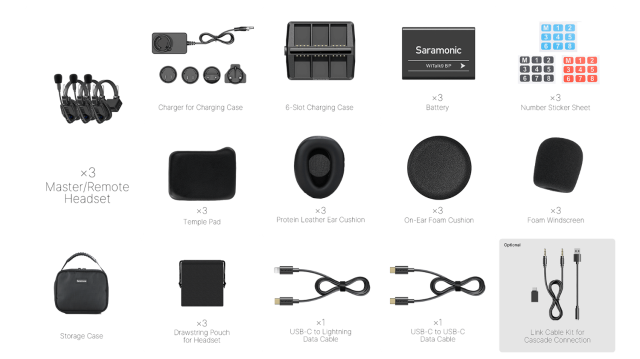 The WiTalk9 SE 3S is a cutting-edge wireless intercom system tailored for professional teams that require seamless, hands-free communication in dynamic environments such as filmmaking, live events, broadcast, and stage production. This 5-person system utilizes Saramonic's ClearTalk™ technology, which combines a three-microphone array and sophisticated noise cancellation algorithms to ensure crystal-clear 360° sound capture and rejection of ambient noise.