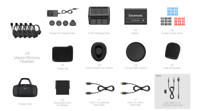 The WiTalk9 SE 5S is a cutting-edge wireless intercom system tailored for professional teams that require seamless, hands-free communication in dynamic environments such as filmmaking, live events, broadcast, and stage production. This 5-person system utilizes Saramonic's ClearTalk™ technology, which combines a three-microphone array and sophisticated noise cancellation algorithms to ensure crystal-clear 360° sound capture and rejection of ambient noise.