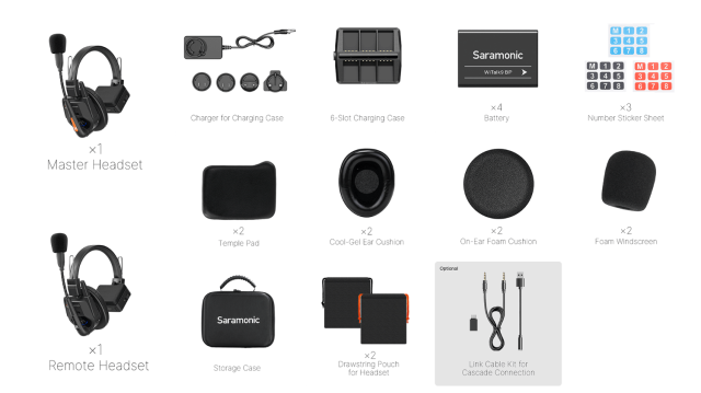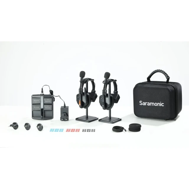 The Saramonic WiTalk9 WT2S is a 9-person, hub-free, full-duplex wireless intercom system designed for seamless team communication. This kit includes one master and four remote headsets, offering hands-free operation and a range of up to 500m. Featuring ClearTalk™ noise cancellation and DECT technology, it ensures crystal-clear, secure, and reliable communication even in noisy environments.