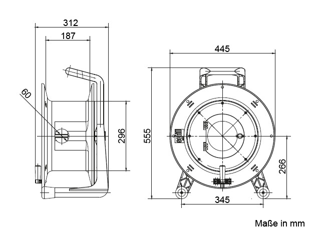 Special rubber cable drum with front flap - Cable reel GT 450.MFK – Schill – 28000000560 – 4013046280745: Housing material=Rubber, Cable assembly=Without cable, With mounting frame=yes, Automatic cable winding=no, With thermal overload protection=yes, Degree of protection (IP)=Other