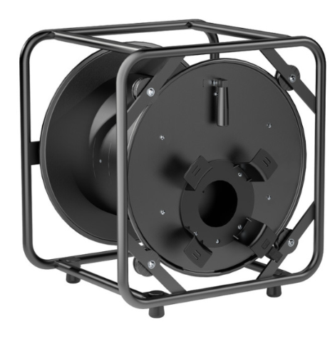 The Schill SK 4822.RM cable reel offers a sturdy and dependable solution for managing heavy cables with large bending radii. Its closed large steel core, mounted on two bearings, ensures smooth rotation and durability under demanding conditions. The reel is supported by a closed square steel tube frame, providing exceptional strength and stability. Equipped with an adjustable brake, the frame allows for secure cable control during use. The front metal side features a plate with a four-fold mounting system, enabling efficient stacking and convenient storage. Finished in sleek black, the auxiliary reel spool is designed to accommodate cables with a core diameter up to 320 mm, making it ideal for industrial and professional applications where reliability and heavy load capacity are essential.