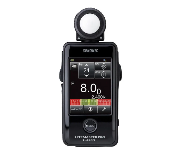 The Sekonic L-478D is the world's first touch screen exposure meter. It boasts many practical features, compact size and ease of use. It has a large colour LCD (2.7") display with a very clear display. The instrument is adjusted by touching or sliding a finger across the screen.