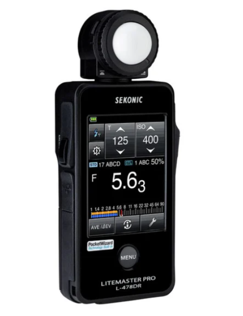 The Sekonic L-478DR is an advanced touch-screen exposure meter with integrated PocketWizard Control TTL, offering precise ambient and flash light measurement with an intuitive color LCD interface for photographers and cinematographers.