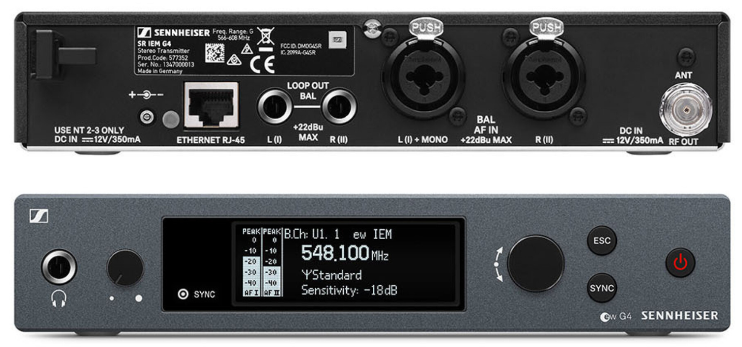 The set includes a half-rack stereo SR IEM G4 transmitter housed in rugged full-metal construction with an OLED display for intuitive operation. Wireless synchronization between transmitter and receivers is easily achieved via infrared, while compatibility with Sennheiser WSM control software allows flexible frequency allocation. With up to 16 compatible channels, a 42 MHz bandwidth, and 1680 selectable frequencies, the EW IEM G4-A1 offers interference-free operation in busy RF environments.