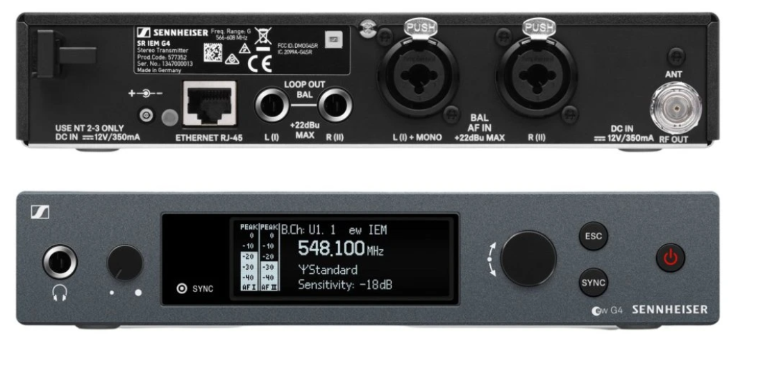 The Sennheiser SR IEM G4 A is a professional rackmount transmitter for the evolution wireless IEM G4 system, operating in the 516–558 MHz frequency range. It delivers powerful, reliable UHF transmission with crystal-clear sound, making it ideal for live performances, broadcast and touring applications.