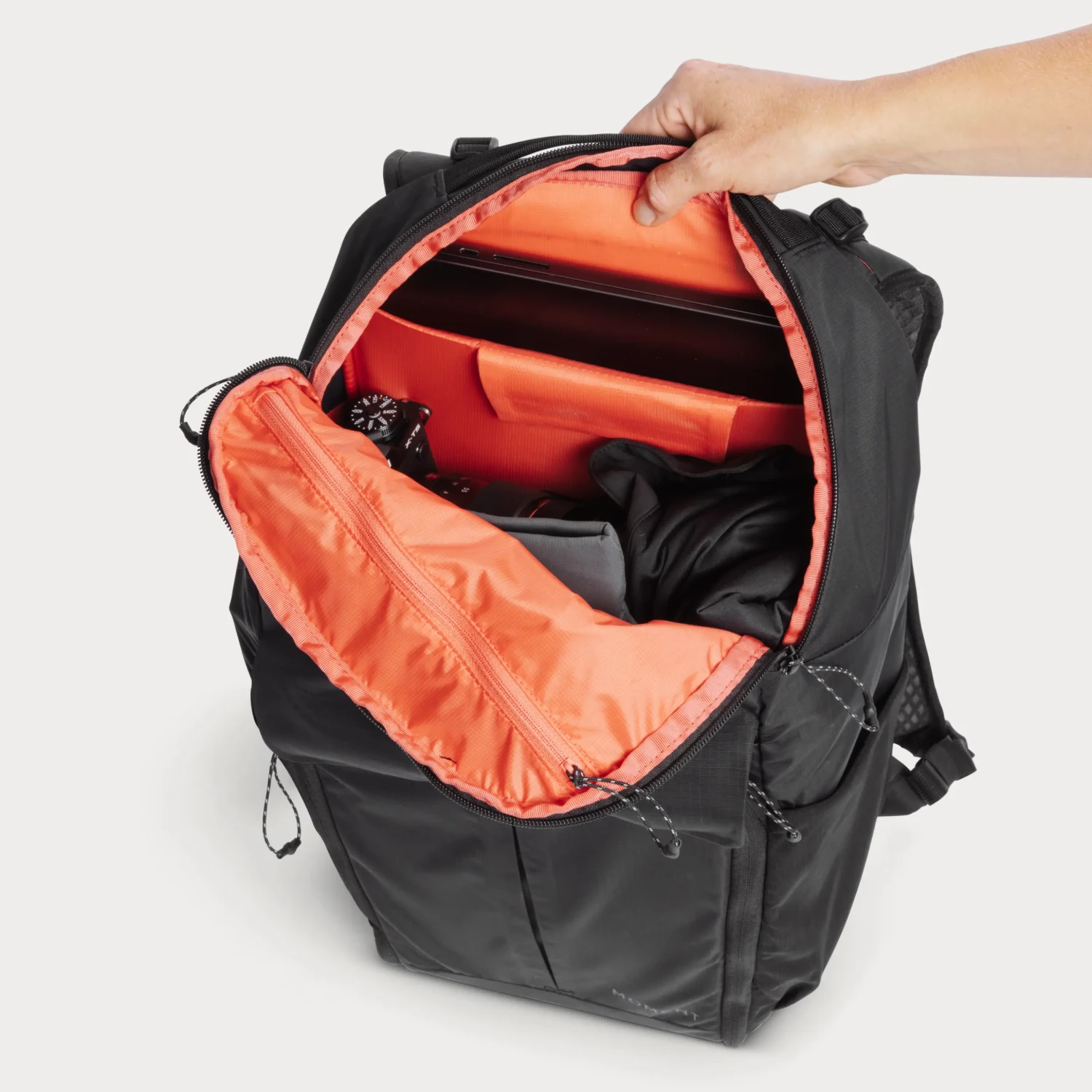 Simple single-compartment design with top access for quick retrieval of items from the top layer or full front access for photo equipment. No more rummaging through your backpack.
