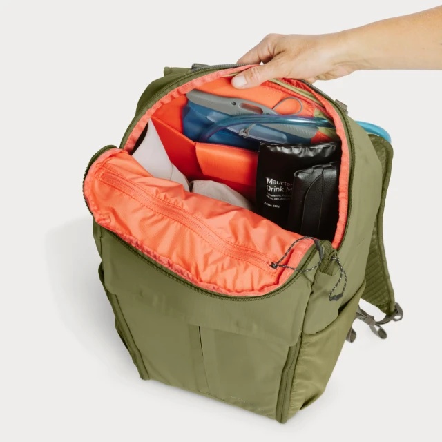 Simple single-compartment design with top access for quick retrieval of items from the top layer or full front access for photo equipment. No more rummaging through your backpack.