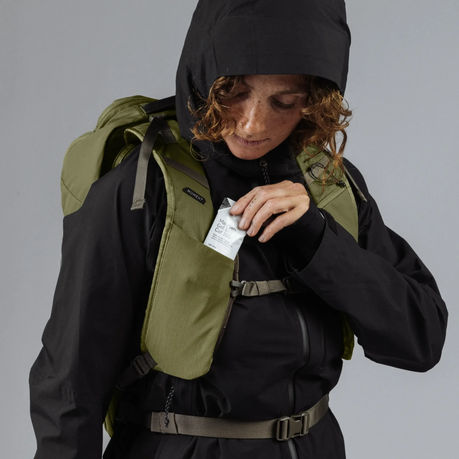 LightWeave™ Ripstop fabric with a double layer of PFAS-free DWR coating provides water-repellent protection. A magnetic flap diverts water away from the front zipper, reducing water penetration during downpours.