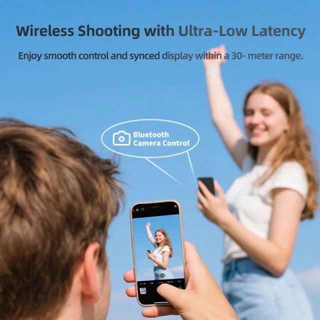 The 1200mAh battery ensures up to 4 hours of uninterrupted operation, and Bluetooth shutter control allows remote iPhone operation from up to 30 meters. Magnetic mounting enables flexible attachment to tripods, mounts, or creative setups. 60ms latency provides responsive video monitoring.