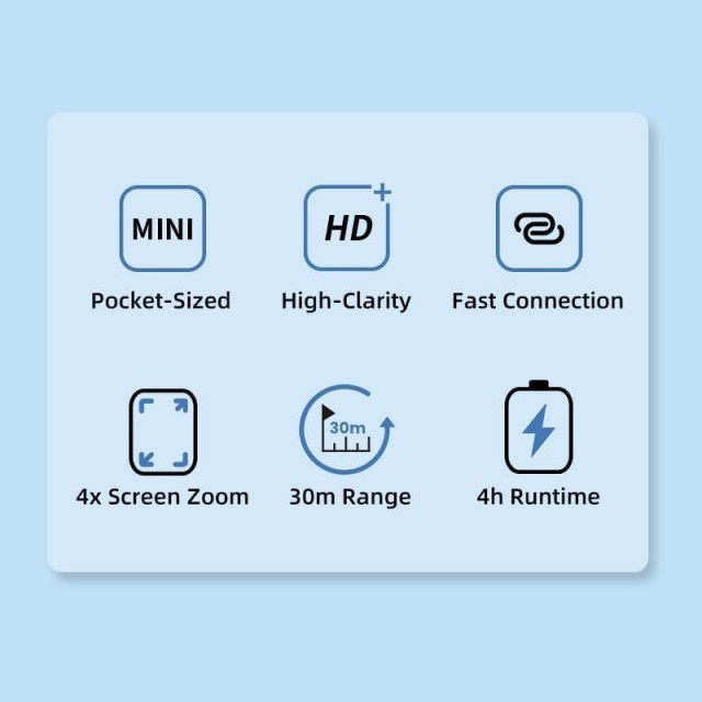 The Shimbol CP5 Mini2 Blue delivers a simple and fast solution for mobile creators. With instant one-tap wireless connection, it pairs with iPhones in seconds, letting you monitor your shot without any complicated setup. Its 2.4-inch HD screen (480×800) provides sharp, clear visuals, and the one-click smart zoom enlarges the image without changing the aspect ratio, maintaining precise framing. Weighing only 60g, it stays discreet and unobtrusive in your frame.