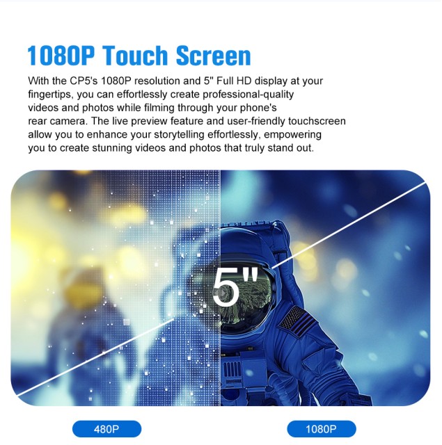 With integrated wireless shutter control and USB-C compatibility, the CP5 streamlines your camera workflow. Its compact design includes a 3.5mm port for audio monitoring, a microSD card slot for storing footage, and Bluetooth remote control support for enhanced usability. This monitor is ideal for professional videographers, vloggers and filmmakers who require a high-quality portable monitoring solution.