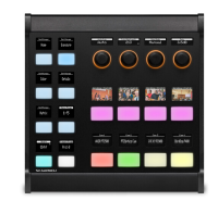 The panel features 19 programmable four-way RGB buttons, each paired with its own graphical OLED display. This combination provides clear visual feedback and allows users to assign multiple functions per button, making it easy to manage complex workflows, camera presets, and switching operations in real time.
