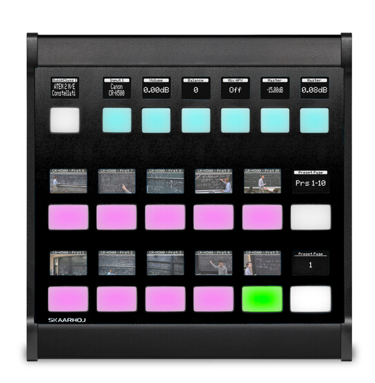 The SKAARHOJ Frame Shot Pro with Blue Pill Inside (Black) is a powerful and versatile PTZ switcher panel built for professional live production, broadcast, and AV environments. Designed as a standalone controller, it enables efficient switching and control of PTZ cameras and connected systems through a compact and highly customizable interface.