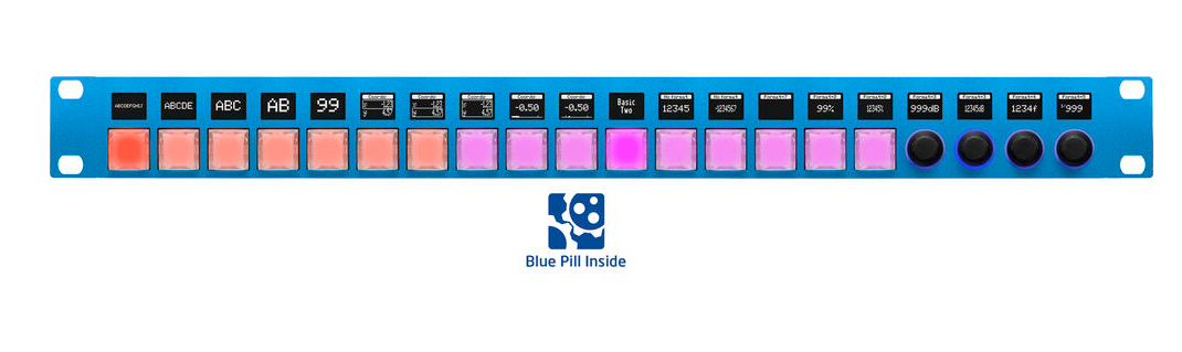 The SKAARHOJ Rack Pro 1 with Blue Pill is a compact 1RU rack-mounted control panel