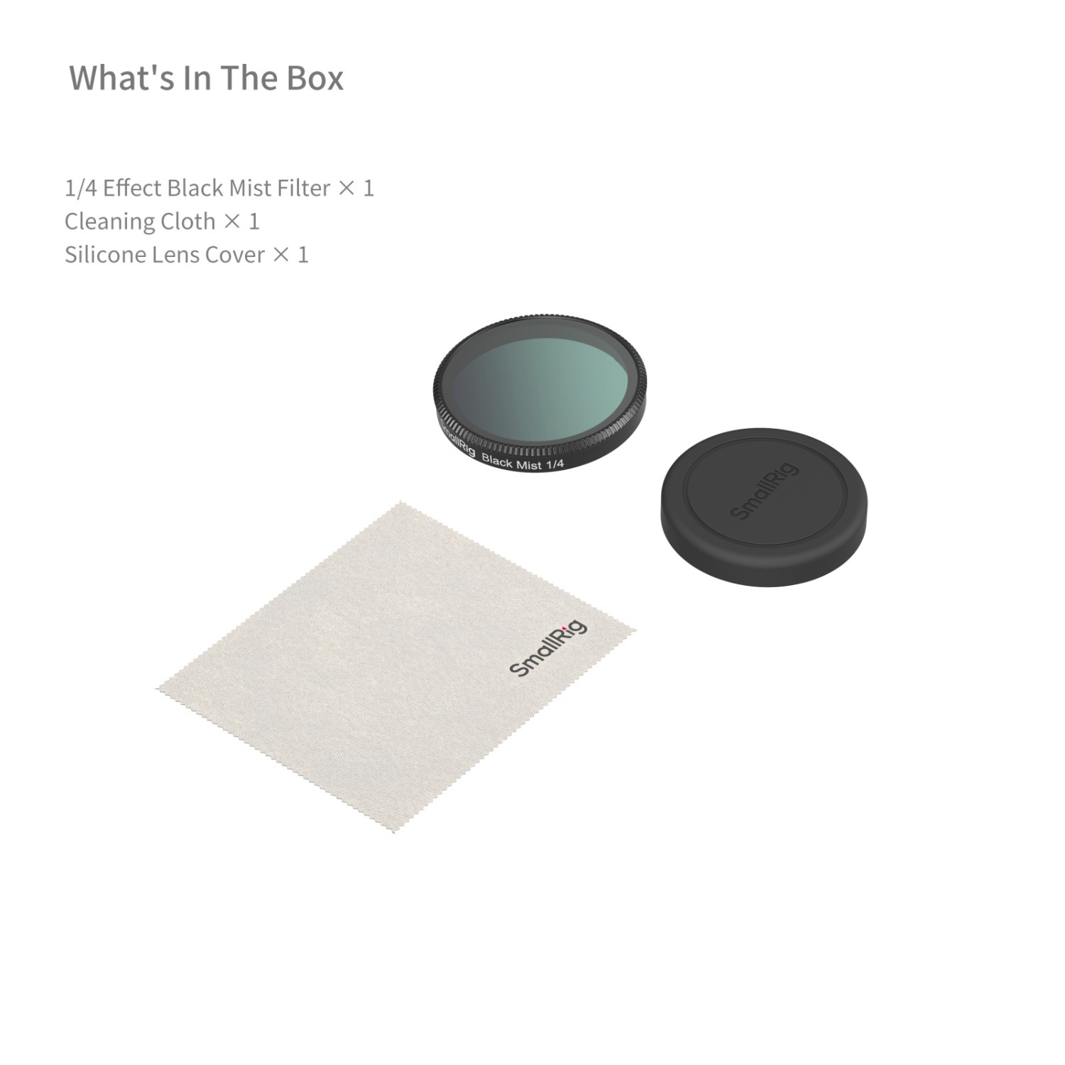 SmallRig 1/4 Effect Black Mist Filter for DJI Osmo Action 6 6086 is specifically designed for DJI Osmo Action 6. Crafted from high-quality Rainbow high-alumina glass, this filter offers superior durability with excellent impact and wear resistance. It effectively eliminates stray light to ensure consistently sharp and high-quality image quality. The package includes a 1/4 black mist filter, a silicone lens cover, and a cleaning cloth.