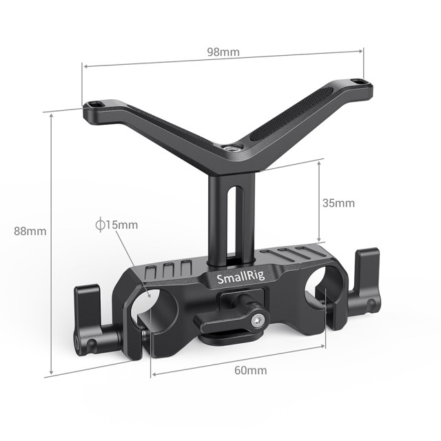 SmallRig 15mm LWS Universal Lens Support BSL2680 is designed to remove the weight stress from camera's lens mount when your camera is mounted on separately available 15mm LWS rods. The lens support offers 34.5mm vertical adjustment to fit most lens. The center column attaches to a Y-support which features strap slots on each side for further secure. The height is adjustable via the quick release knob without using tools. The lens support is compatible with lens diameter up to 150mm.