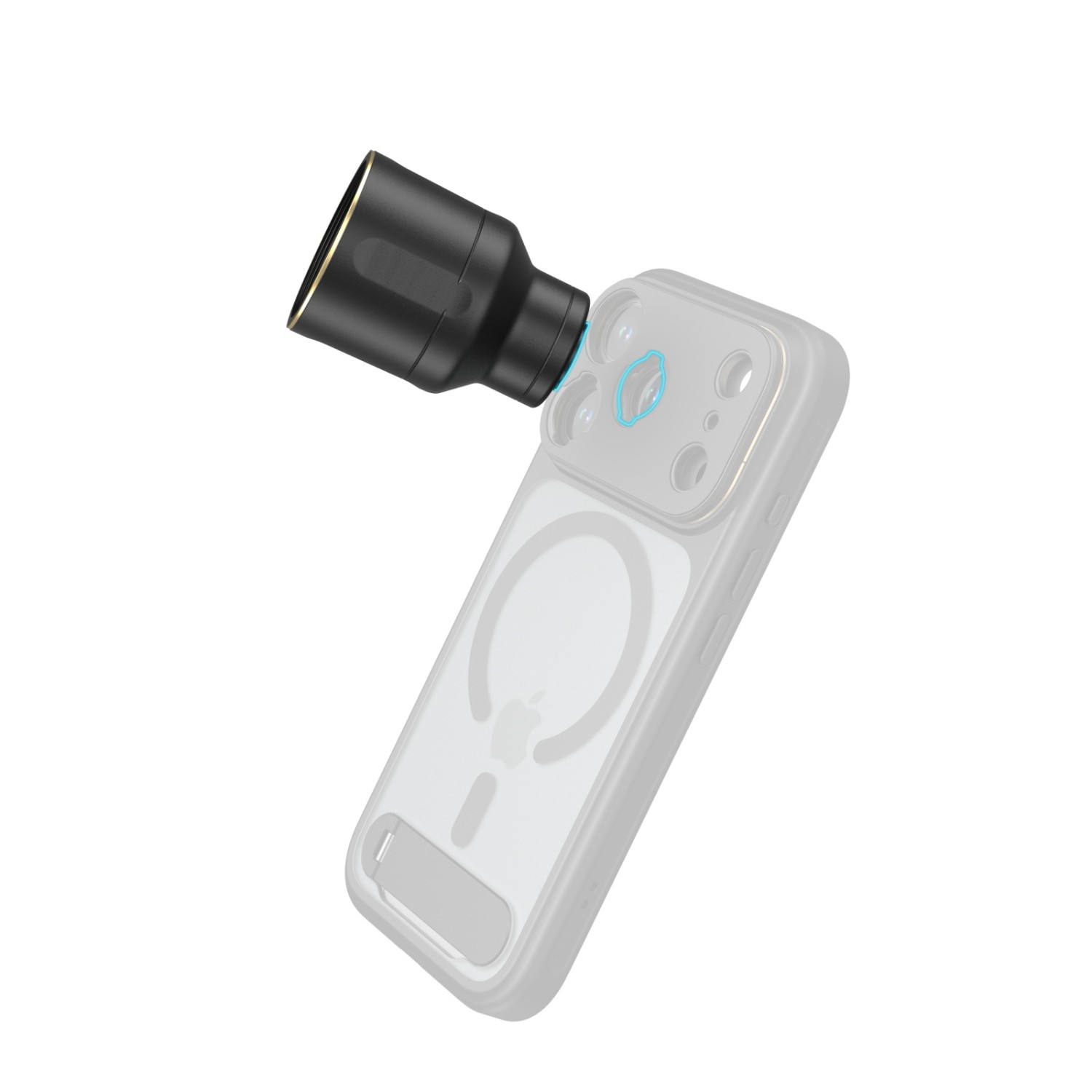 The 2× teleconverter doubles the optical magnification of your smartphone's telephoto lens with a minimum focusing distance of 5 m (16.4 ft). These lenses are made of optical glass with a multi-layer coating, minimizing distortion and color shift and providing vivid, full-color HD output.