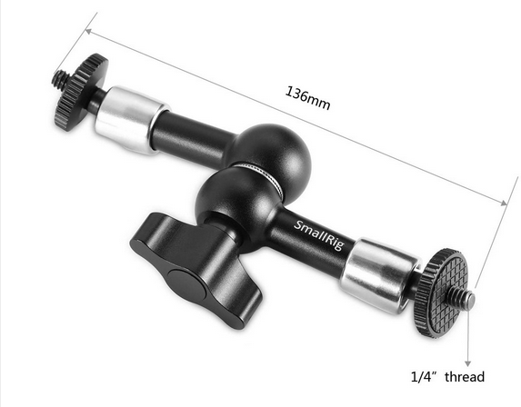It is equipped with 1/4" screws on both ends respectively. Thus, it could attach monitor via the 1/4" screw on the one end and attach accessories with 1/4"-20 threaded holes on the other end, like cage, NATO Rail 1973, 15mm Rod 1182 and Quick Release Rod Clamp 1976 etc. Mounted with 1/4" screw is a rubber cushion which could prevent the scratches of monitor and help to lock the monitor tighter. It features an ergonomic wingnut for great convenience that could help to adjust any angles based on your needs.