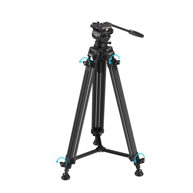 Constructed from carbon fiber, the tripod features a 2-2-1 segmented leg design and built-in anti-detachment swivel feet, ensuring optimal stability on uneven or rocky terrain. Despite its sturdy construction, the entire system weighs only 2.7kg (6lb), making it exceptionally easy to transport in fast-paced shooting environments.