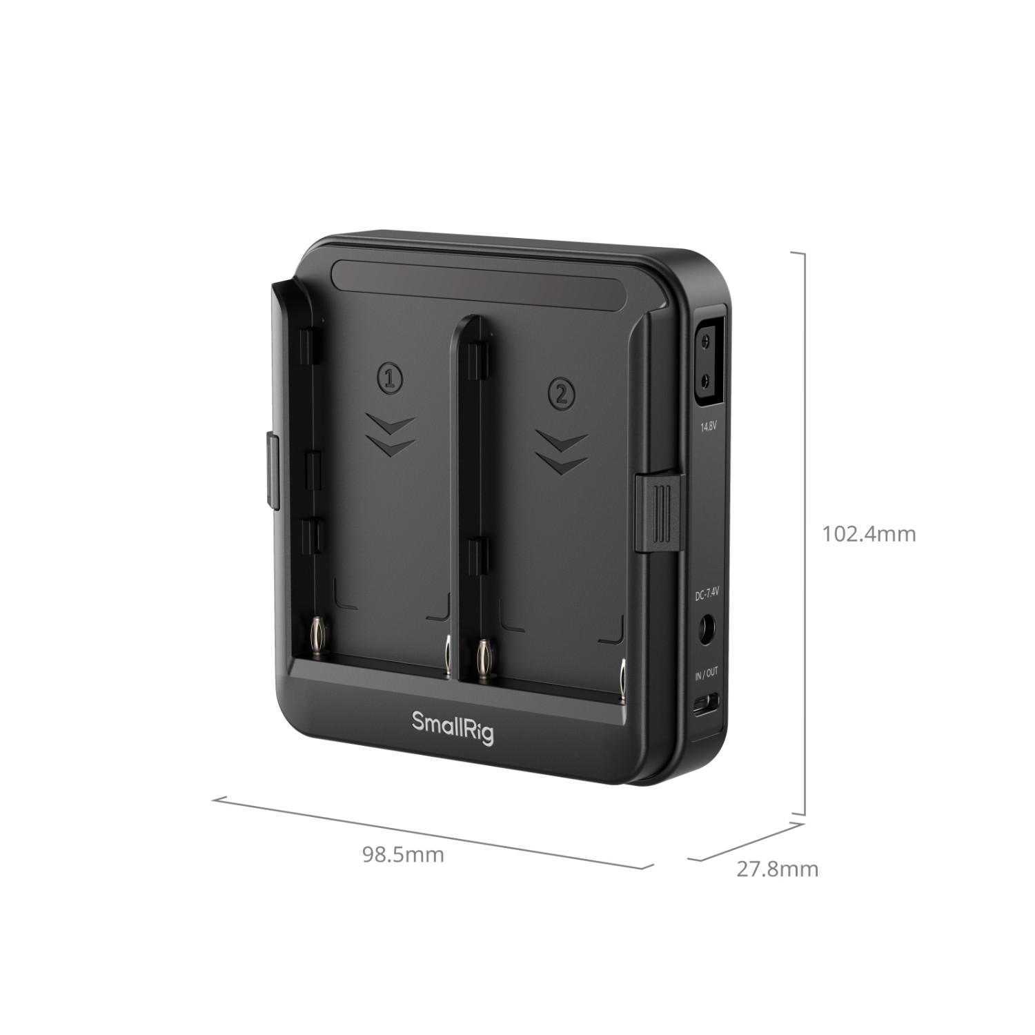 SmallRig Adapter Plate for NP-F Type Batteries (Supports UPS) 5536 is designed to provide continuous power for mirrorless cameras, monitors, and other equipment using NP-F series batteries. This plate can be mounted using a V-mount plate or the bottom 1/4"-20 threaded holes and accommodates one or two NP-F batteries to power your gear. When two batteries are installed, the hot-swap feature allows you to replace one battery without shutting down connected devices, ensuring an uninterrupted power supply (UPS).