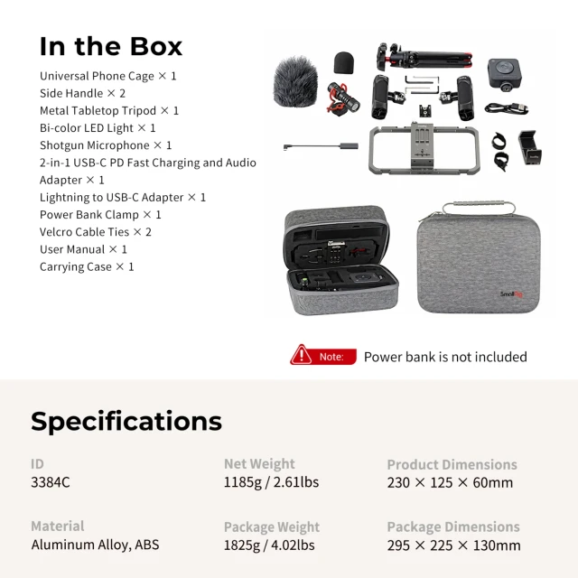 The SmallRig 3384D is a mobile filming kit that offersacomprehensiveprofessional solution for both mobile and static filming, integrating audio, lighting, and support systems into one universal setup.
