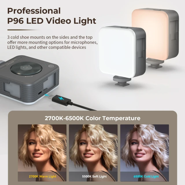 A compact and portable LED light with two color temperature settings and long battery life provides flexible lighting options for a variety of shooting conditions.