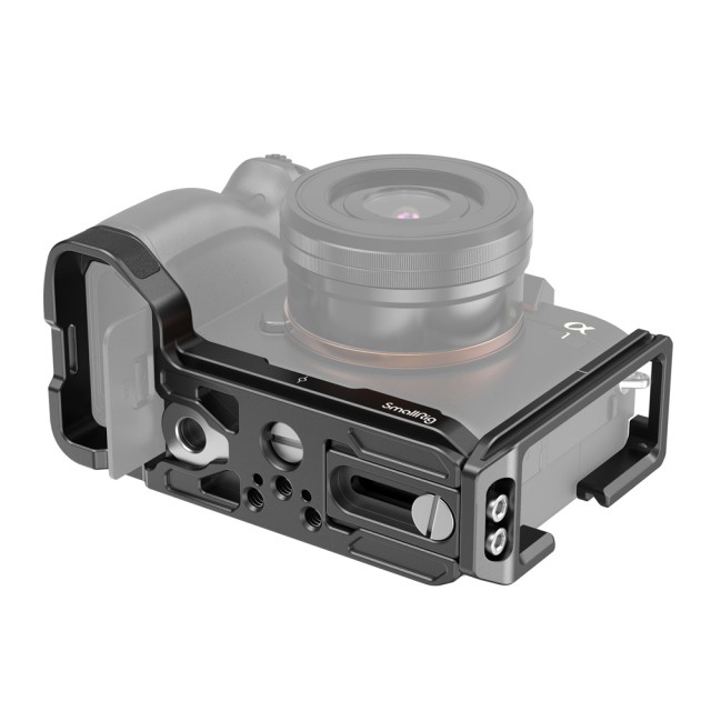 SmallRig L Bracket for Sony A1&A7S III&A7R IV&A9 II 3207 is specially designed for quick switch between vertical and horizontal shooting and for better grip experience. It locks the camera via a 1/4"-20 screw on the bottom and features rubber pads on the baseplate to prevent scratching and twisting. Both the baseplate and side plate are of Arca-Swiss standards with center marks. The side plate can be extended to the left if more room is needed for tethering or cable release, and can be forwarded to allow the utilization of flip screen.