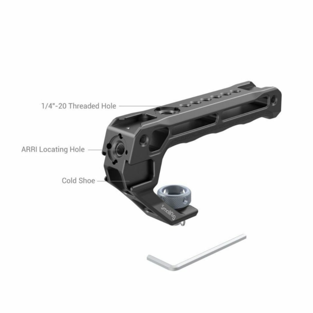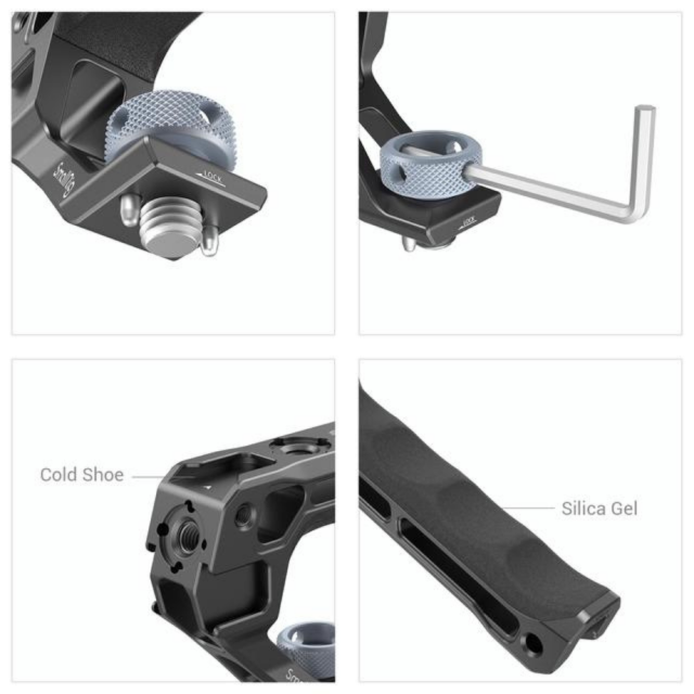 SmallRig ARRI Locating Handle 3765 is designed to facilitate low-angle shot and reduce burdens on arms. The ergonomic handle, featuring anti-slip and anti-freeze silicone, feels comfortable and weighs only 124g because of a hollowed-out structure. It has 3 front cold shoes and 2 rear cold shoes that allow simultaneously mounting microphone, LED light, monitor, and other accessories. ARRI 3/8" -16 locating holes support Monitor Mount 2903, 2348 to attach monitors; 1/4 "-20 threaded holes support Magic Arm 2070 for monitors and Remote Control 2924 for recording. An Allen Wrench helps tighten the locking screw, making it easy to assemble and disassemble.