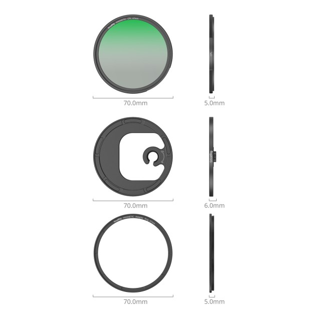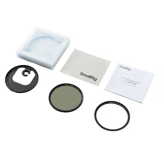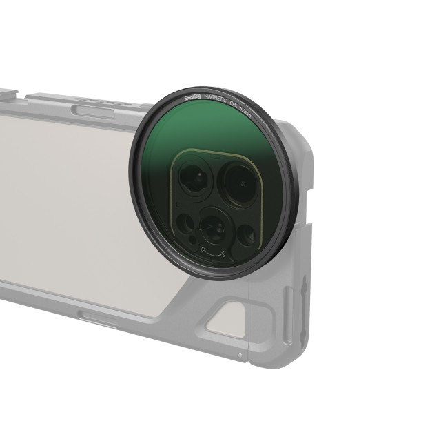 SmallRig Attachable CPL Filter with M-mount Filter Adapter (67mm) 4727 By employing a polarizing filter and adjusting it to the appropriate angle, reflections on water, glass, and still objects can be effectively minimized. The multi-coated optical glass offers reliable optical quality. The magnetic attachment system provides users with a fast and efficient experience for installing and replacing filters. The set includes an M-mount adapter ring for direct integration with the M-mount backplane on iPhone series cages. Equipped with the threaded adapter ring, the filter can be mounted on a 67mm camera lens, providing a convenient magnetic filter installation experience for camera lenses.