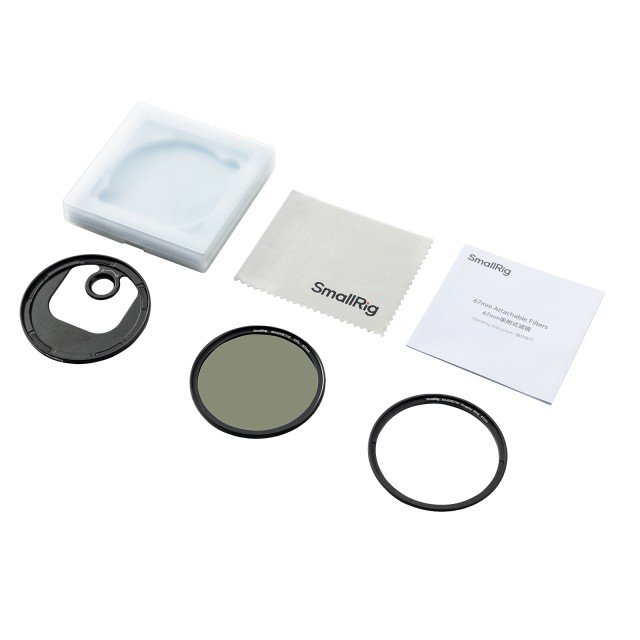 SmallRig Attachable CPL Filter with T-mount Filter Adapter (67mm) 4728 By employing a polarizing filter and adjusting it to the appropriate angle, reflections on water, glass, and still objects can be effectively minimized. The multi-coated optical glass offers reliable optical quality. The magnetic attachment system provides users with a fast and efficient experience for installing and replacing filters. The set includes a T-mount adapter ring for direct integration with the T-mount backplane on iPhone series cages. Equipped with the threaded adapter ring, the filter can be mounted on a 67mm camera lens, providing a convenient magnetic filter installation experience for camera lenses.