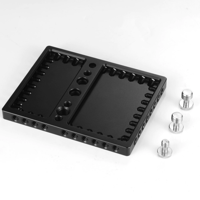 SmallRig Baseplate for Kinefinity Terra/Mavo/Mavo LF MD2302 provides the Kinefinity Terra and Mavo series cameras with lots of 1/4" mounting points without adding much weight. The extra mounting points can be used to attach 15mm rod support or a V-Lock assembly, for example. It is a great way to increase flexibility without needing to add much rigging. The baseplate attaches securely to the camera with two 3/8" screws and one 1/4" screw. A tripod plate can be mounted underneath the baseplate.