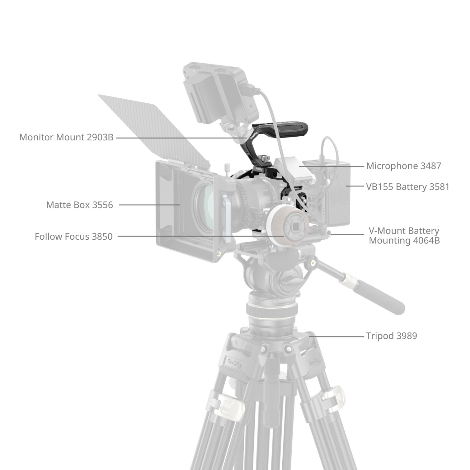 The ergonomic top handle provides a comfortable grip, making low-angle shooting and easy carrying effortless. The cage features multiple mounting points, including 1/4"-20 threaded holes, 1/4"-20 locating holes, 3/8"-16 threaded holes, ARRI 3/8"-16 locating holes, a cold shoe mount, an Arca-compatible interface, a QD socket, and strap slots. These versatile options allow users to attach monitors, microphones, tripods, follow focus systems, handles, and other accessories, supporting a wide range of video creation needs.