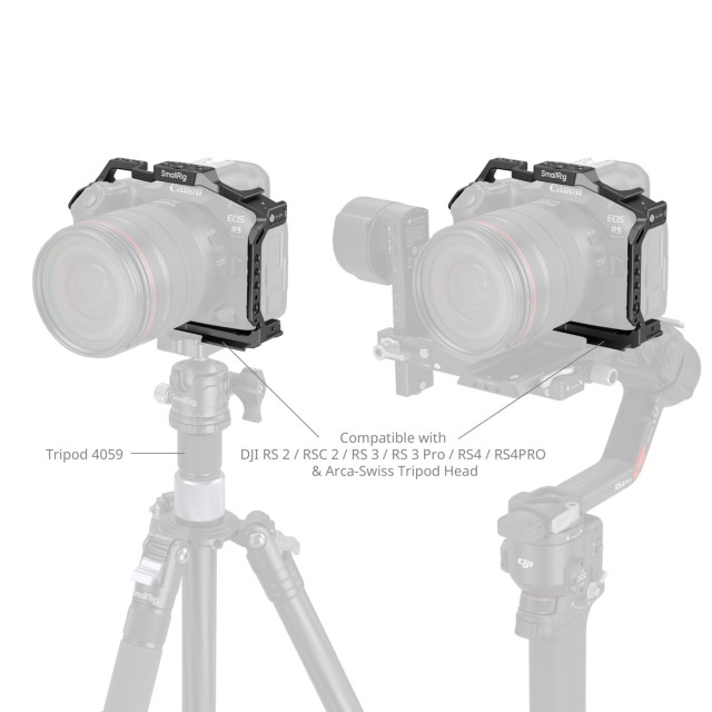 4. The incorporated Arca-Swiss quick-release baseplate is compatible with Arca-type tripods and DJI RS 2 / RSC 2 / RS 3 / RS 3 Pro / RS 4 / RS 4 Pro stabilizers.
