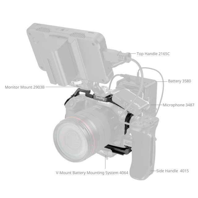 The cage features ordinary strap slots compatible with wrist straps (ID 3848), an innovative strap slot for downward hanging for extra lens protection, and a QD interface compatible with QD quick-release shoulder straps (ID 4118).