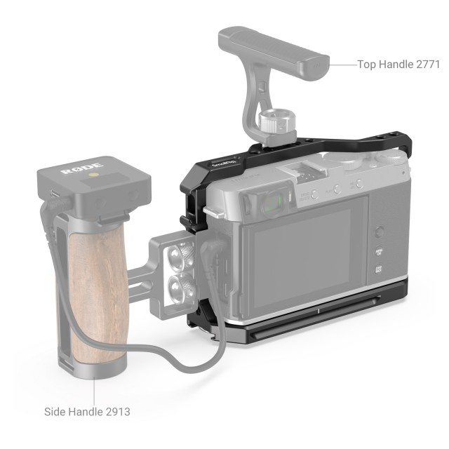 SmallRig Cage for Fujifilm X-E4 Camera 3230 is designed to provide accessory mounting points and improve grip experience in professional video shooting. It secures to the camera via one 1/4"-20 screw on the bottom and features anti-twist flanges in front to prevent twists. Featuring multiple built-in 1/4"-20 threaded holes that support SmallRig Top Handle HTS2756, Monitor Mount 2904, Cold Shoe Mount 2879, etc. Its top ARRI 3/8" -16 locating hole fits ARRI Top Handle 2165 and Monitor Mount 2903; its left build-in cold shoe allows mounting microphone or LED light.