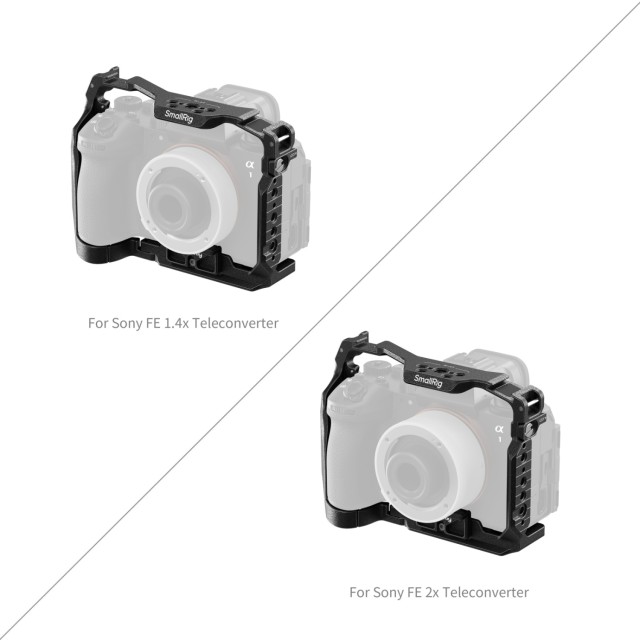 SmallRig Cage for Sony Alpha 1 II / Alpha 9 III 5642 is specifically engineered for wildlife photographers. The cage boasts a three-point locking system, using a bottom 1/4"-20 screw and dual side screws to secure the camera and prevent deflection, while built-in pads protect it from scratches. The integrated teleconverter support is compatible with Sony FE 1.4x and 2.0x models, reducing lens mount strain for more stable shots at long focal lengths.
