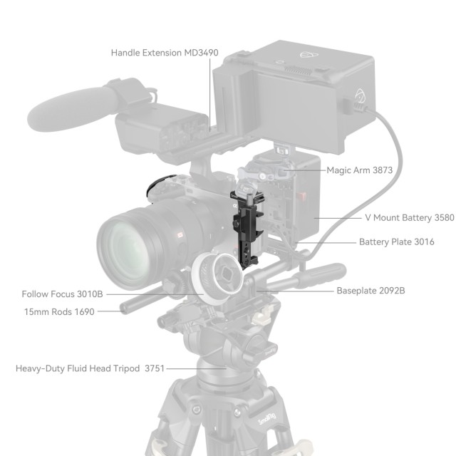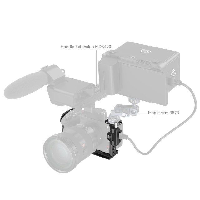 1/4"-20 threaded holes, ARRI 3/8"-16 locating holes, cold shoe mounts, NATO rails, QD port for handle, microphone, LED light, monitor, hand strap, etc.