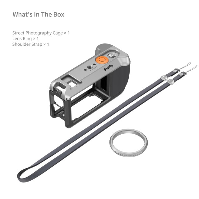 SmallRig Dedicated Street Photography Cage for DJI OSMO Action 6 5891 combines refined retro camera styling with practical functionality for street photographers who value both aesthetics and performance. The kit includes a street photography cage, a shoulder strap, and a lens protection ring.