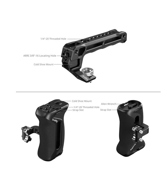 The included top handle with ARRI-style mount allows for comfortable handheld shooting and low-angle shots, while offering additional mounting threads and cold shoe options. The adjustable side handle can be mounted on either side for improved handheld stability and ergonomic operation. An HDMI cable clamp is also included to secure your cable and prevent accidental disconnection during shooting.