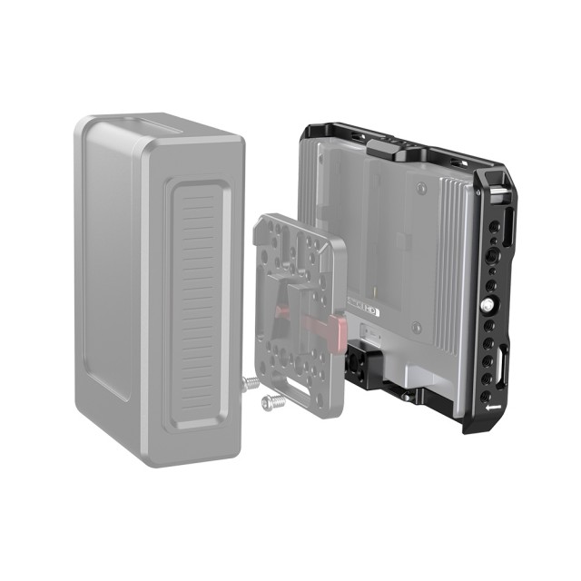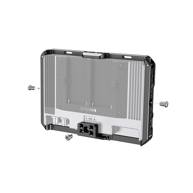 SmallRig Cage with Sun Hood for SmallHD 702 Touch Monitor CMS2684 is designed to provide all-around protection and accessory mounts for the monitor. The cage secures to the monitor via three 1/4"-20 screws, with one on the top and bottom, and one on the back. Featuring multiple 1/4''-20 and ARRI 3/8''-16 threads allows for mounting accessories such as Magic Arm 2115, Monitor Mount BSE2348 and Wireless Receiver Bracket 2107. The bottom features a NATO rail for NATO clamp compatible accessories to quickly release your setup, such as Monitor Mount BSE2385. Dedicated sun hood is included to provide glare protection when shooting outdoor. The backplate is compatible with V-Lock Battery Mount 1846 to attach a V Mount battery. Features multiple rubber pads inside to prevent the monitor from scratching.