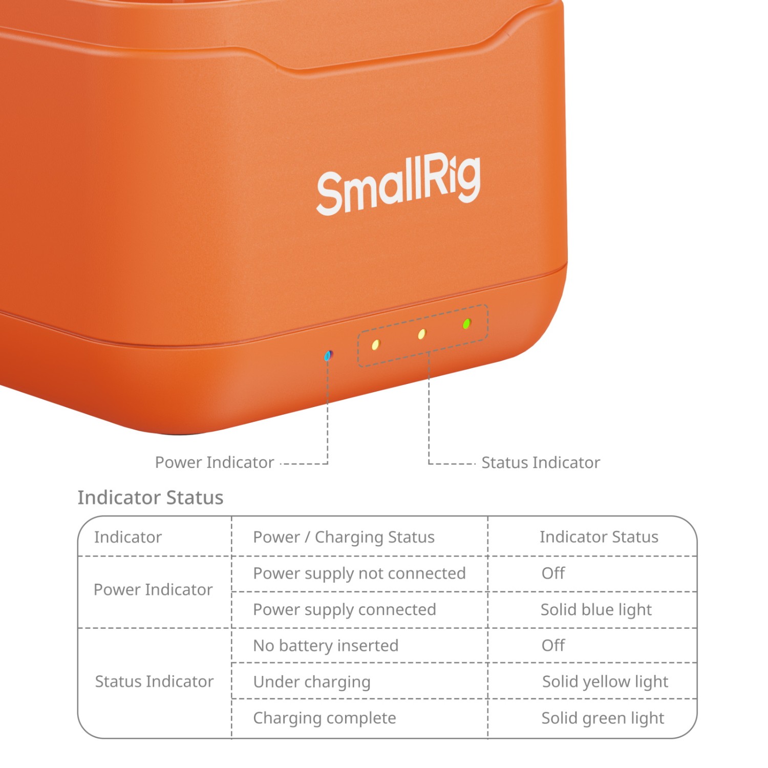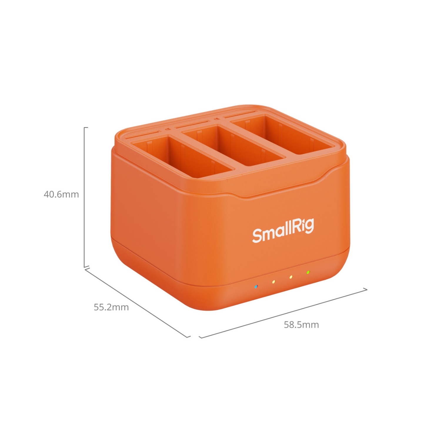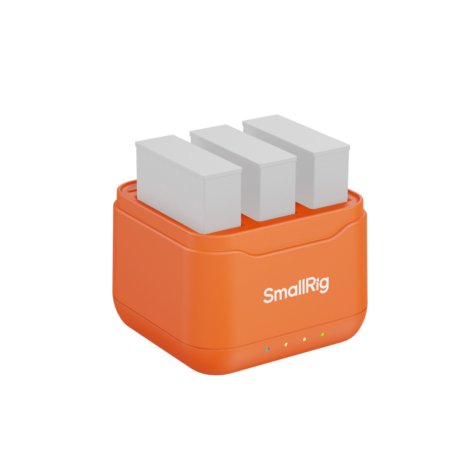 SmallRig Camera Battery Charger for DJI Action 6 5921 is a high-efficiency charging solution compatible with DJI Osmo Action 6, Action 5 Pro, and Osmo 360 cameras. It supports 5V/1A power input via a charging adapter and features three individual battery slots, enabling simultaneous charging of three batteries for efficient power replenishment.