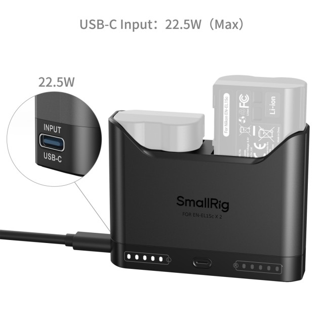 SmallRig Camera Battery Charger guarantees full compatibility with batteries and is capable of charging both original and third-party batteries.