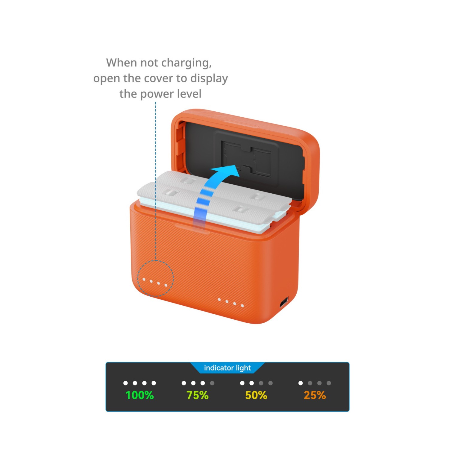 For optimal performance, it is recommended to use a power adapter with an output of 27W or higher. The full charging time for two batteries is approximately 80 minutes.