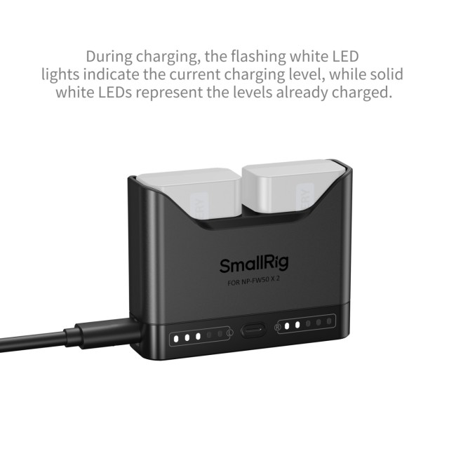 SmallRig Camera Battery Charger guarantees full compatibility with batteries and is capable of charging both original and third-party batteries.