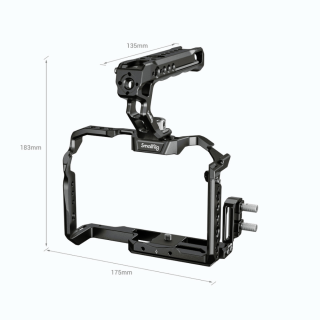 SmallRig Camera Cage Kit for Panasonic LUMIX GH6 3785 enables low-angle shot and protects camera, while providing a variety of accessory mounting points. The kit includes a cage, a HDMI & USB-C cable clamp and a top handle. The top handle feels comfortable and facilitates camera movement and low-angle shot. Like the cage, it features 1/4"-20 threaded holes for Monitor Mount 2294, a cold shoe for microphone, light, etc. and ARRI 3/8" -16 locating holes for Monitor Mount 2903. The cage has a built-in NATO rail on the left to connect NATO accessories, with a HDMI & USB-C cable clamp fixed to its left side via two M3 screws and tightened by a thumbscrew to prevent deflection and protect HDMI & USB-C interface, ensuring stable signal transmission. Built-in Arca-Swiss quick release plate allows tripod photography and supports extended quick release plate for DJI RS 2/RSC 2 gimbal. Besides, the cage comes with an accessible magnetic wrench for easy assembly and disassembly of accessories.
