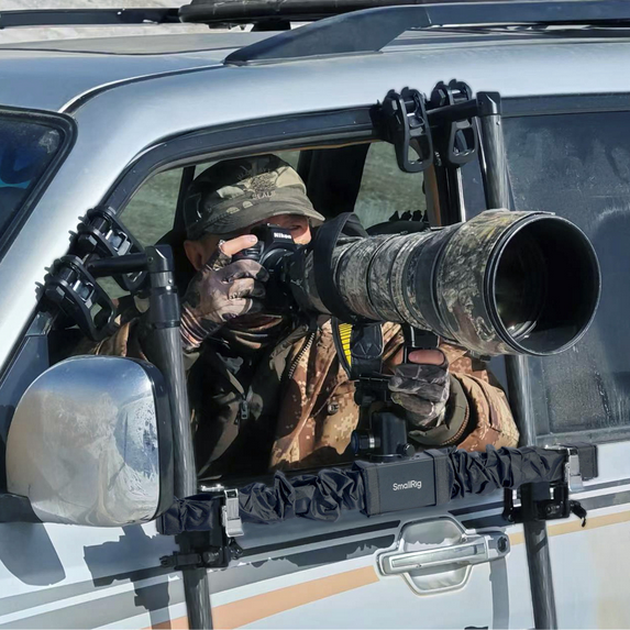 The SmallRig Camera Slider Support Kit for Cars 4614 is specifically designed for outdoor car filming, making it easy to capture unique perspectives with smooth camera movements. This comprehensive kit is ready for immediate use, eliminating the need for disassembly and ensuring unobstructed window operations during shooting.
